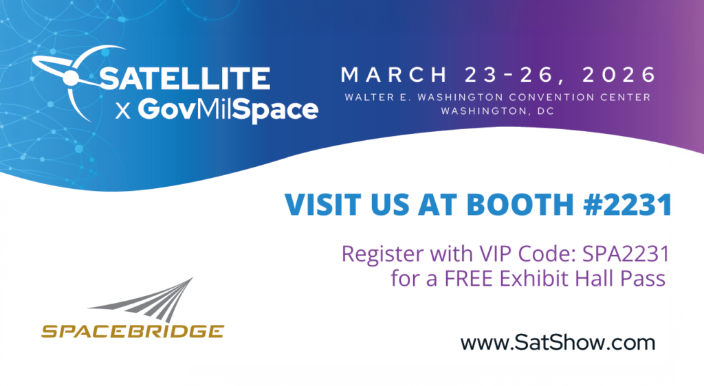 Events _ February 13, 2026_ Laura Guerra_ 0 Comments Satellite Show 2026 Schedule a meeting First Name(Required)Last Name(Required)Email(Required)Job TitleCompany Name(Required)MessageConsent If you’d like to receive future updates from SpaceBridge, including company and industry news, articles, partner updates, and invitations to company events, please check this box.You can unsubscribe from these communications at any time. For more information on how to unsubscribe, our privacy practices, and how we are committed to protecting and respecting your privacy, please review our Privacy Policy. Δ Convergence IndiaMarch 2, 2026